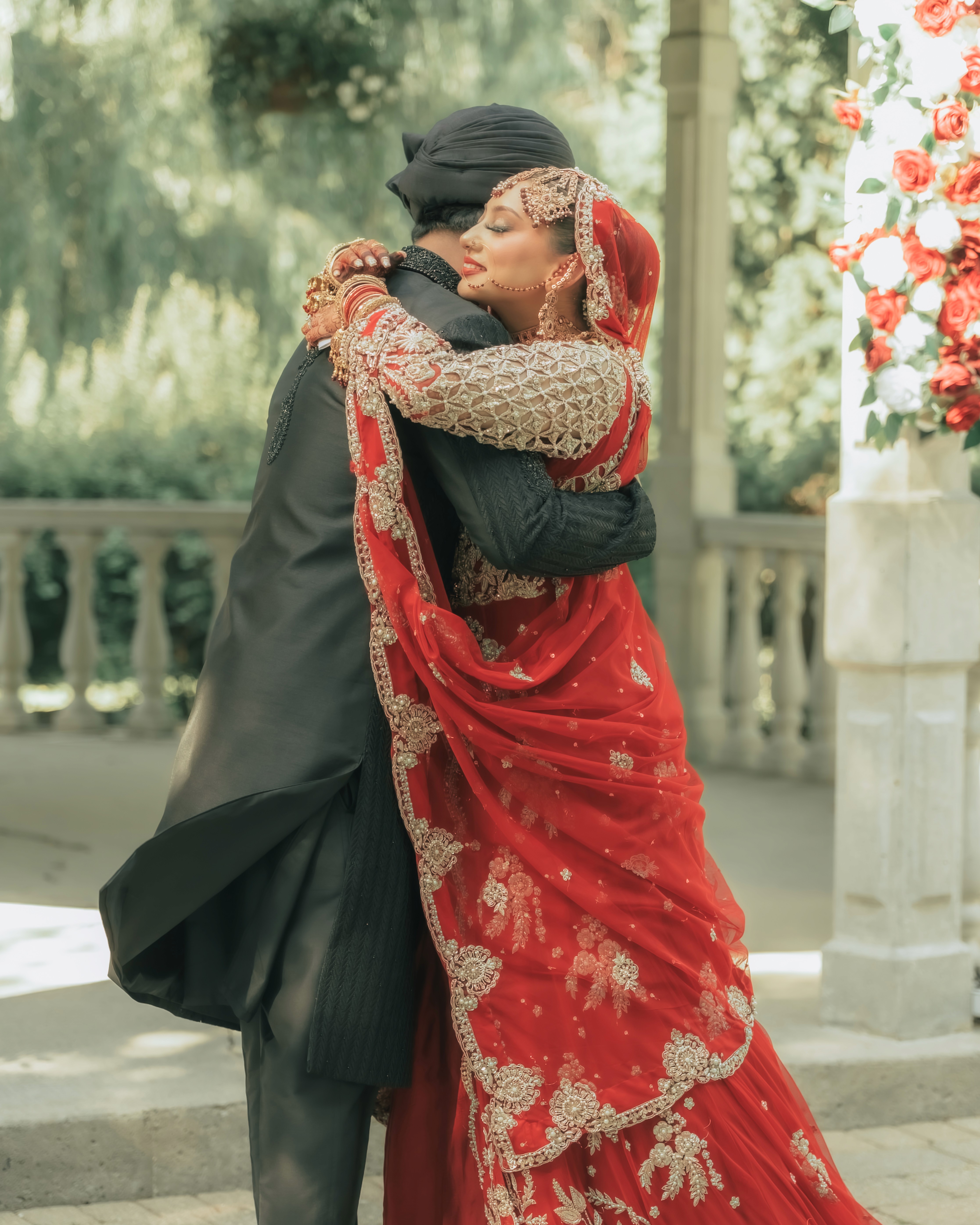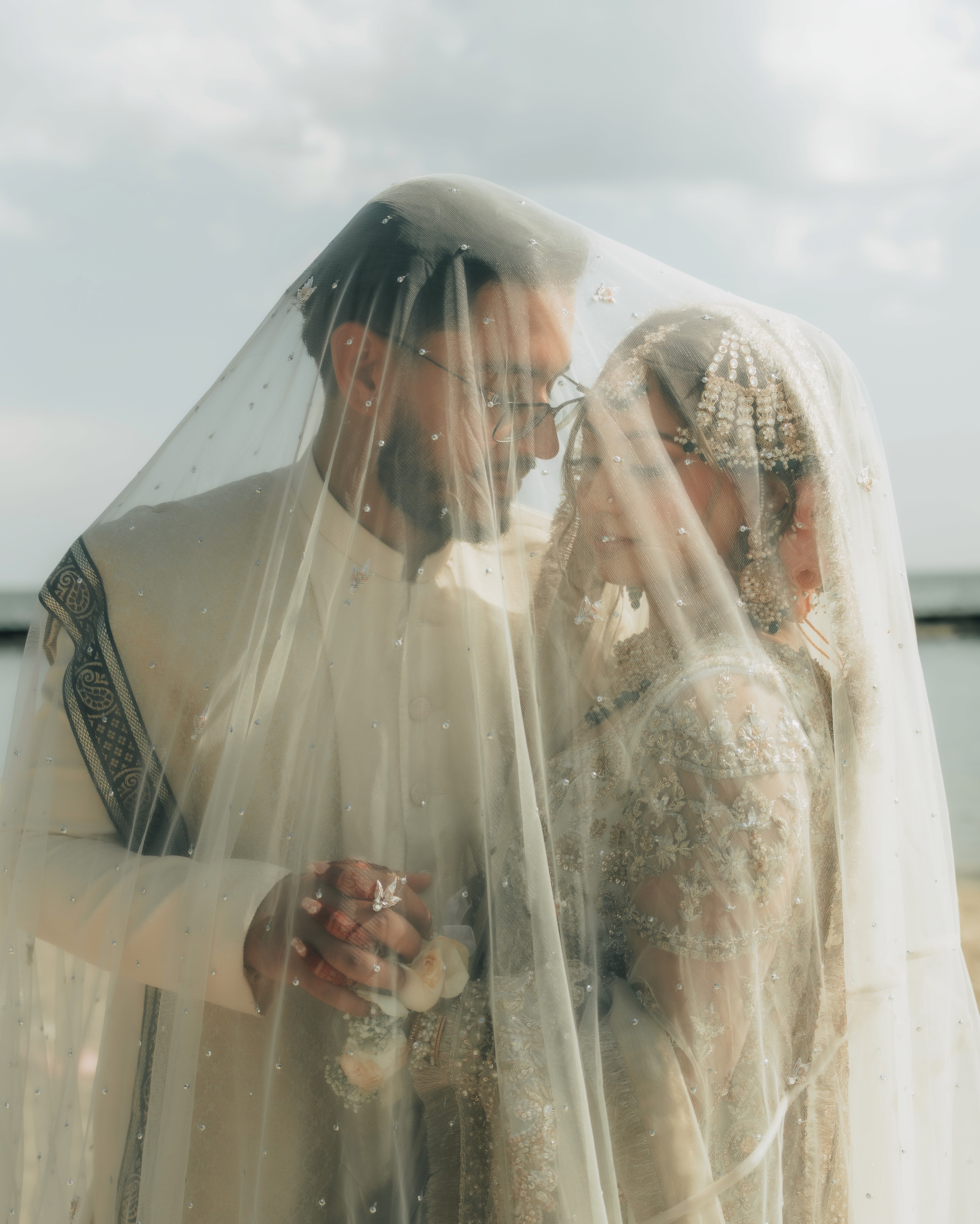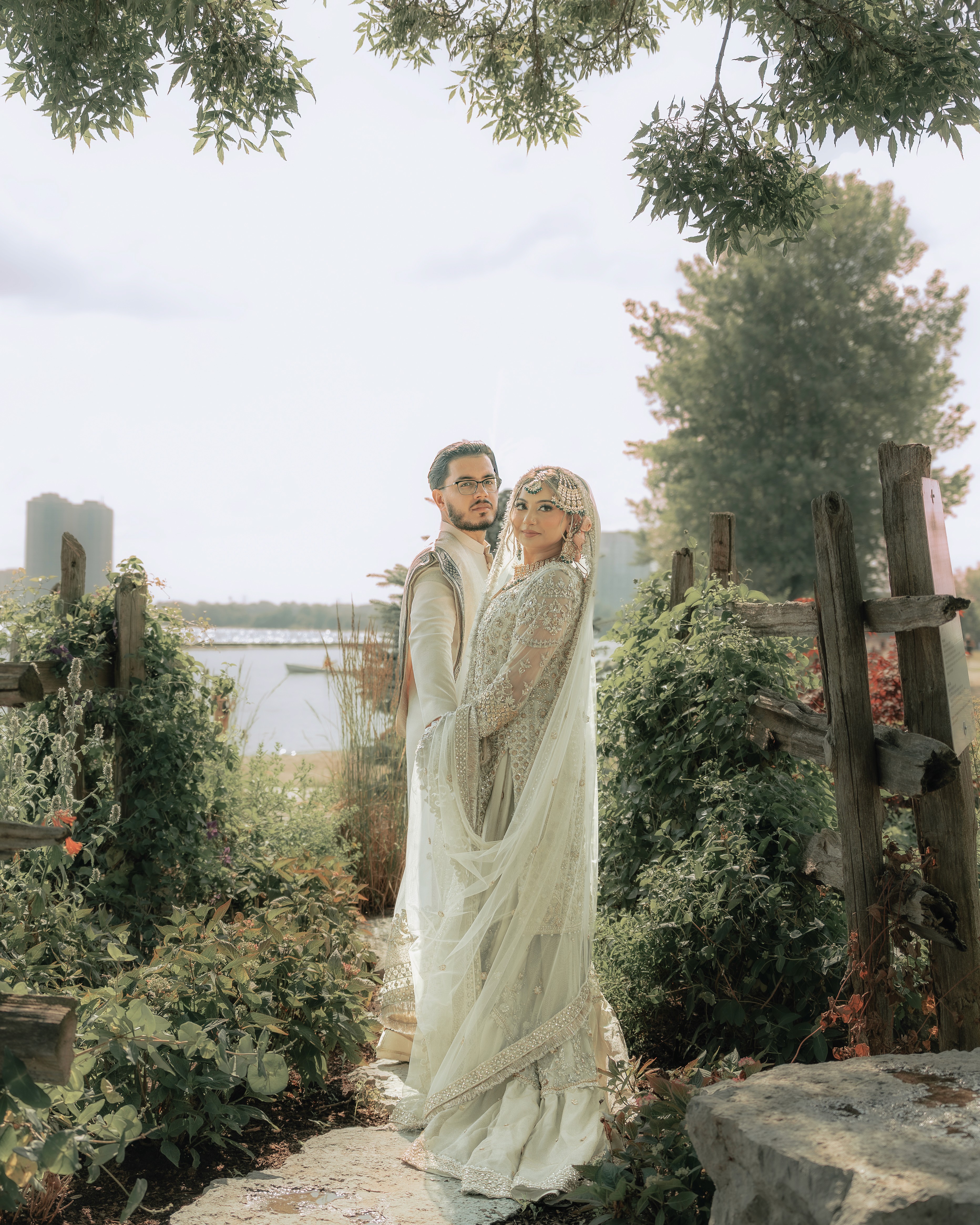An ethereal and majestic celebration, documented through a series of sun-kissed, candid, and elegantly styled portraits that highlight the couple's traditional attire and deep connection.